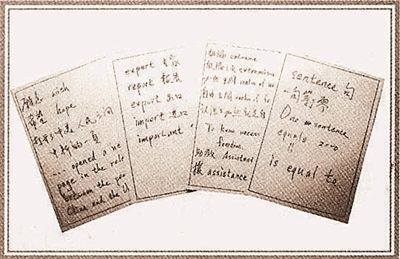 毛主席学英语时用过的单词卡片,由其秘书林克、翻译唐闻生制作。资料图片