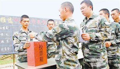 临近年底,第13集团军某炮兵旅注重在评功评奖时发扬民主,广泛听取官兵的意见建议。图为反坦克导弹一连组织官兵对“爱军精武标兵”候选对象进行不记名投票。 文 庆摄