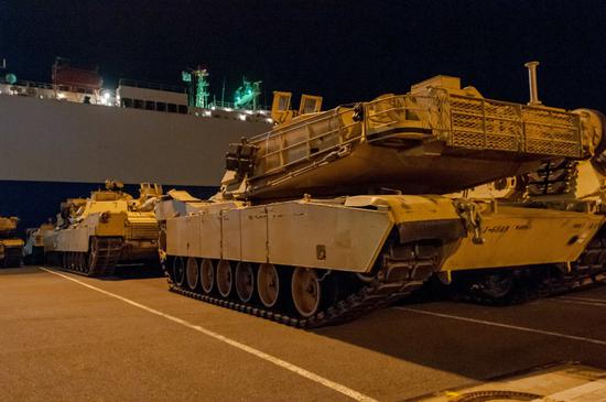 于年初被运抵德国不莱梅港的美国坦克已于1月12日抵达波兰的萨根市。这些装备将被配备给编制为3500人的美国第4步兵师。