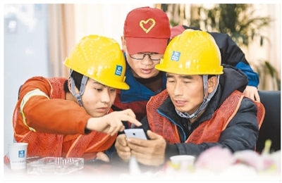 1月17日,中建三局一公司青年志愿者来到武汉北四环建设项目部“工友‘益’站”,为项目建设者讲解火车票网络购票方法,帮助他们购买返乡车票。 新华社记者 肖艺九摄