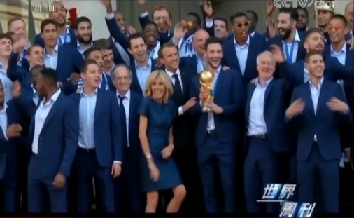法国总统马克龙与球员一起庆祝的画面也充斥了法国的媒体。