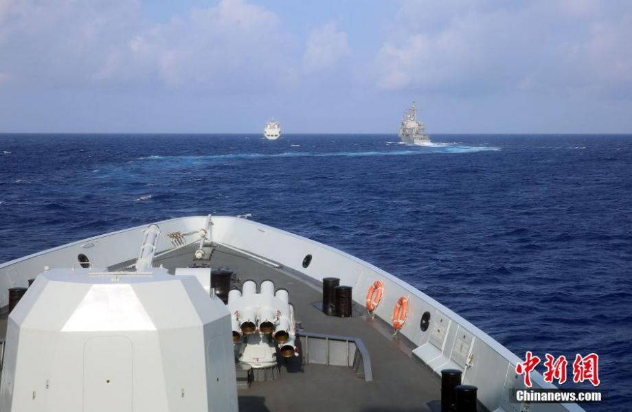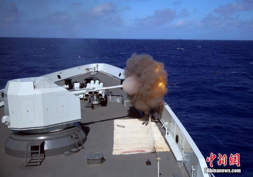 中国海军衡水舰艇开赴射击海区。 中新社记者 张立松 摄
