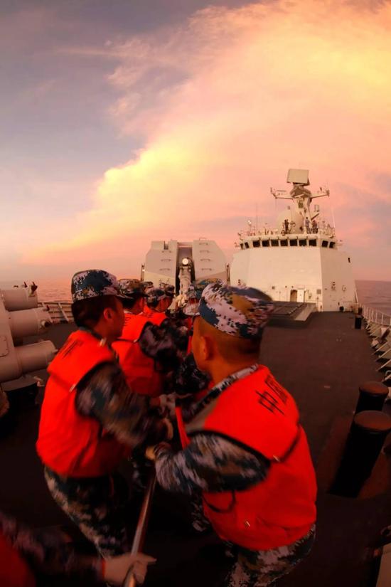 在许海华看来,中国海军从黄水走向蓝水,从家门口走向远海活动,向作战海域备战的过程中,中国海军是在广阔的大洋上活动,并且会和不同国家舰艇打交道,需要运用也应该充分利用国际法规、国际惯例等来维护中国海军在海上的权益和海洋利益。