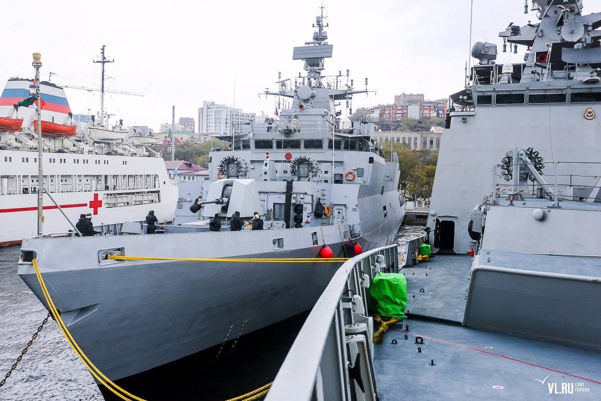 这是印度海军什瓦里克级F48“萨特普拉”号导弹护卫舰,进入俄罗斯符拉迪沃斯托克海域的时候,俄方鸣放礼炮相迎的热闹场面。