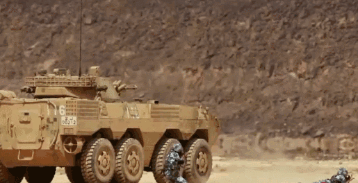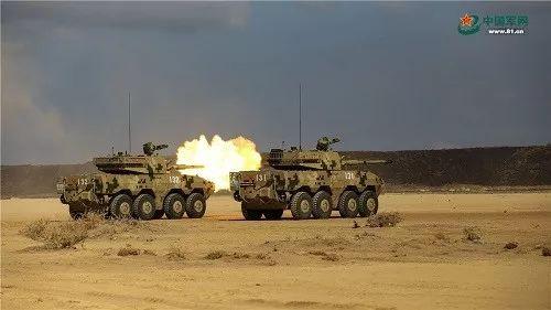▲11月23日,中国驻吉布提保障基地组织官兵在吉布提进行火炮实弹射击训练。图为轮式装甲突击车正在实射穿甲弹。(中国军网)
