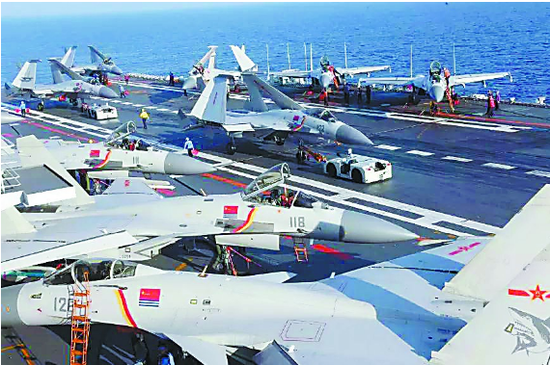 4月12日参加完南海海域举行的海上阅兵后,辽宁舰编队迅即从阅兵场奔赴训练场。航母编队重点围绕作战体系构建与运用,突破潜艇伏击区、远海制海制空作战、编队指挥所训练等多项内容展开训练。辽宁舰歼-15舰载战斗机和直升机轮番起飞、降落、加油、再次起飞,甲板上各岗位官兵紧张高效地保障舰载机的出动率。