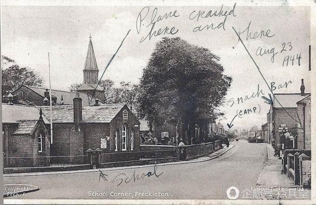 战争爆发前的弗雷克尔顿镇街道,左侧的学校已经在事故中被轰炸机撞毁
