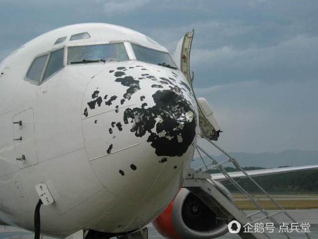 被雷雨云中的冰雹砸坏机头的民航客机,恶劣天气可不仅仅是“让飞机淋雨”而已