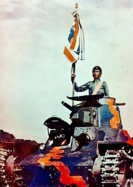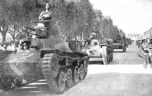 ▲83式轻战车参加在泰国首都曼谷的抗法胜利阅兵式,而这些脆皮也只能欺负一下缺乏反坦克武器的殖民军步兵