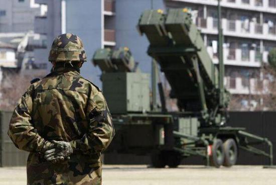 一名日本自卫队队员站在“爱国者3”型导弹前。新华社/路透