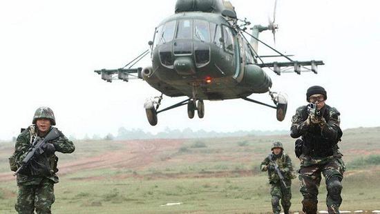 训练之中的中国特种部队,可以看到负责机降是1架普通的米-17直升机