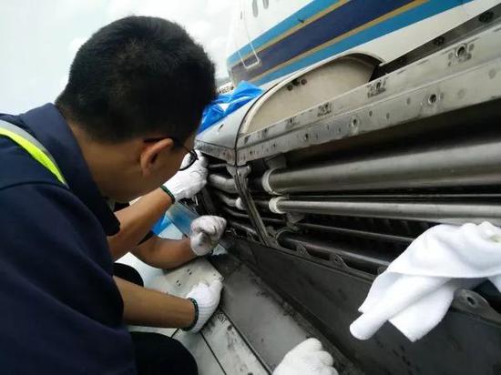 看了前面的内容,我们可以这么说:“擦飞机”并不是让人深恶痛绝的“表面工作”“面子工程”。一方面油污和空气中的污染物颗粒会附着在机体表面,腐蚀蒙皮,甚至造成安全隐患;另一方面污染物会遮盖住裂纹等损伤,影响机务人员及时发现、排除故障隐患。因此擦飞机对于保障飞行安全是有着非常重要的实际意义的。