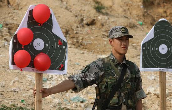 图片:我军特种部队进行的队友间“顶苹果”信任射击。