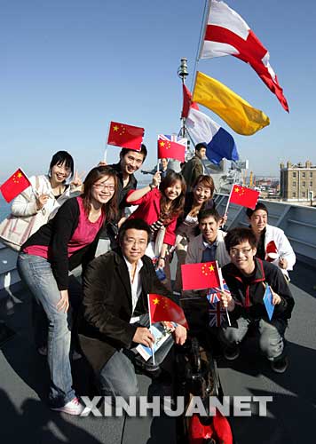![]() 9月6日,在英国朴茨茅斯港码头,旅英华人华侨高兴地登上中国军舰留影。 新华社记者查春明摄