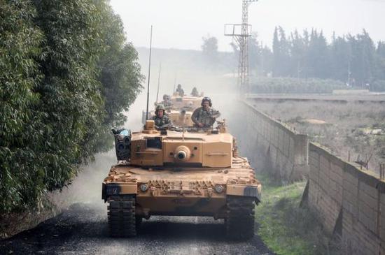 资料图片:在叙利亚阿夫林地区开进的土耳其陆军豹2A4坦克部队。(图片来源于网络)