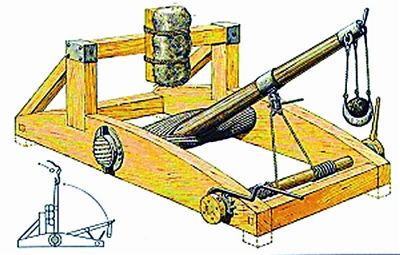 抛石机有很多种,如人力抛石机、配重抛石机、扭力抛石机等。现在没有确切的记载阿基米德的抛石机具体是什么样子。也就是说,如果以笼统的抛石机概念来论,最早的抛石机并不是阿基米德的那些装置。因为相传我国的周代就出现了抛石机,叫“抛车”,而春秋时期的《范蠡兵法》则明确记载,“飞石重十二斤,为机发,行三百步”。唐代的兵书《神机制敌太白阴经》则更为详细,记载了抛石机的制作方法及原理等等。还有其他很多关于抛石机的记载。但遗憾的是,我们的战史把太多的笔墨留给了将军们,虽然偶尔也有一点落到这些兵器上,但工匠们只能是用来遗忘的。