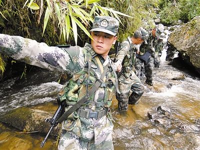 左图:战士们跋山涉水,艰难地行走在巡逻路上。刘永富摄