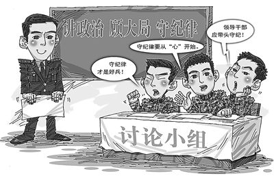 党员干部应该强化法纪意识,视法纪为“高压线”,自觉遵守,严格执行。守纪律,最重要的是严守政治纪律。每一名党员都应该严守党的政治纪律,坚决维护纪律的严肃性和权威性,坚决同一切违反政治纪律的行为作斗争。置身军营,党员干部更应强化政治意识,自觉同党中央、中央军委保持高度一致,坚决反对政治上的自由主义,不听、不信、不传各种消极言论,更不乱猜测、乱打听、乱议论。与此同时,严守条令条例和各项规章制度,切实做到令行禁止,决不“踩线越轨”。沈阳军区某部 王国生、荆勇奇