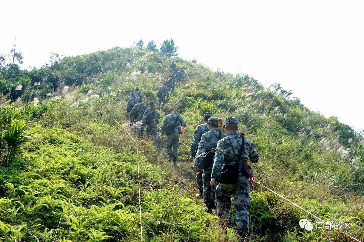 根据雷场勘察结果,选择山高林密的山岳丛林地进行训练,这是爆破手扛着炸药向山顶的雷区进发。