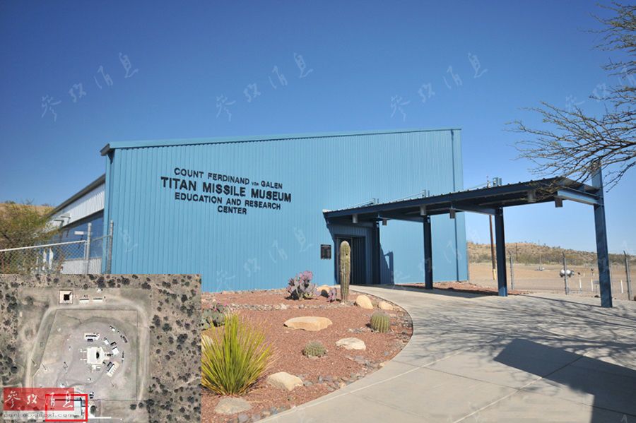 位于美国亚利桑那州南部图森市附近的泰坦导弹博物馆(Titan Missile Museum)是世界上唯一一处游客获准进入的泰坦导弹井。图为博物馆入口标牌。