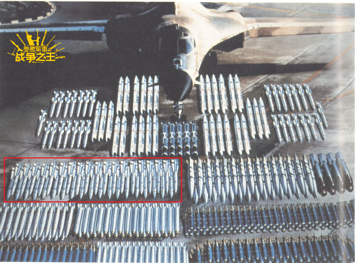 由于预算紧张,未来美国空军战斗机的缺口将达到数百架,为了保持对中、俄空军的领先优势,美空军计划将F-22和F-35隐身战斗机与升级改造后的B-1B和B-52战略轰炸机一同协同作战,这些升级后的轰炸机将被称为“武库机”。B-1A的地面武器挂载展示图,红框标出的即为AIM-54远程空空导弹。