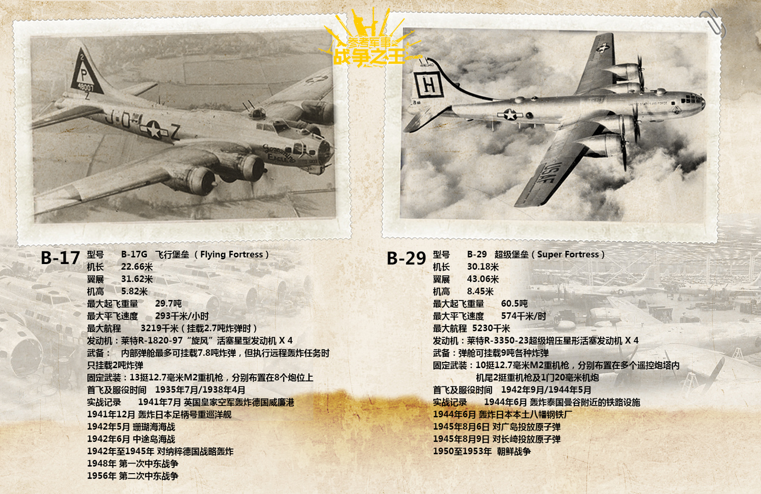 首先是二战中的两种“功勋机”: B-17和B-29轰炸机,两者帮助确立了波音公司在二战后美国大型军机市场的地位。