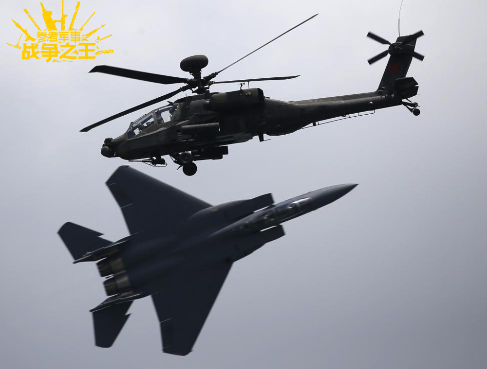 图为2016年2月的新加坡航展上,隶属于新加坡空军的AH-64D攻击直升机与F-15SG战斗轰炸机同台献艺表演,能看到同一旗下的战机和直升机联合飞行,的确十分难得。