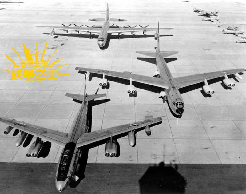 本图展示了美空军20世纪50年代的三大战略轰炸主力,由远至近依次是B-36、B-52B和B-47E,其中除B-36外,另外两员都是波音公司的产品。