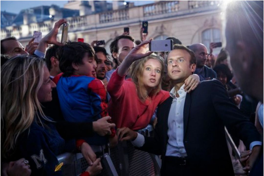 法国“夏至”音乐节期间,马克龙与民众合影。