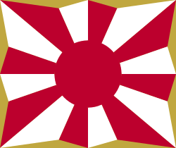由此就产生了带有十六条红色放射光线的“旭日旗”。如今的陆上自卫队采用的是由此演化而来的八道放射光线“旭日旗”。而日本海军的军舰则和民船一样使用“日之丸”作为船籍旗,直到1889年,才改成沿用至今的“偏心旭日旗”。