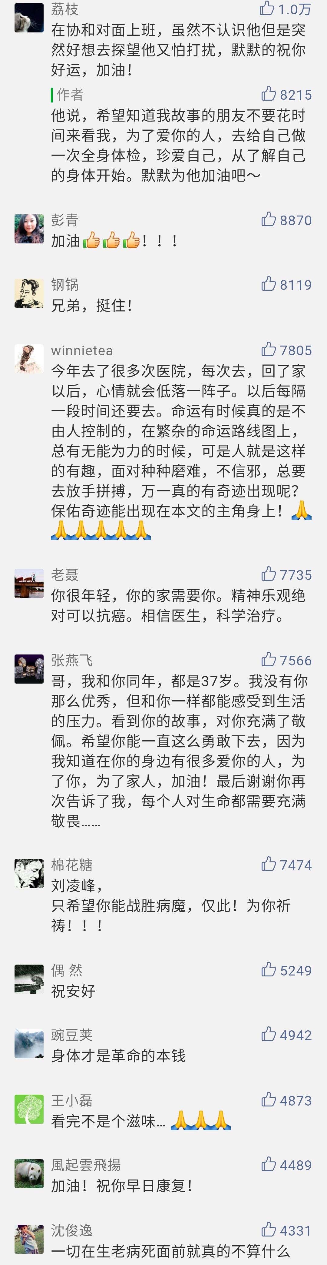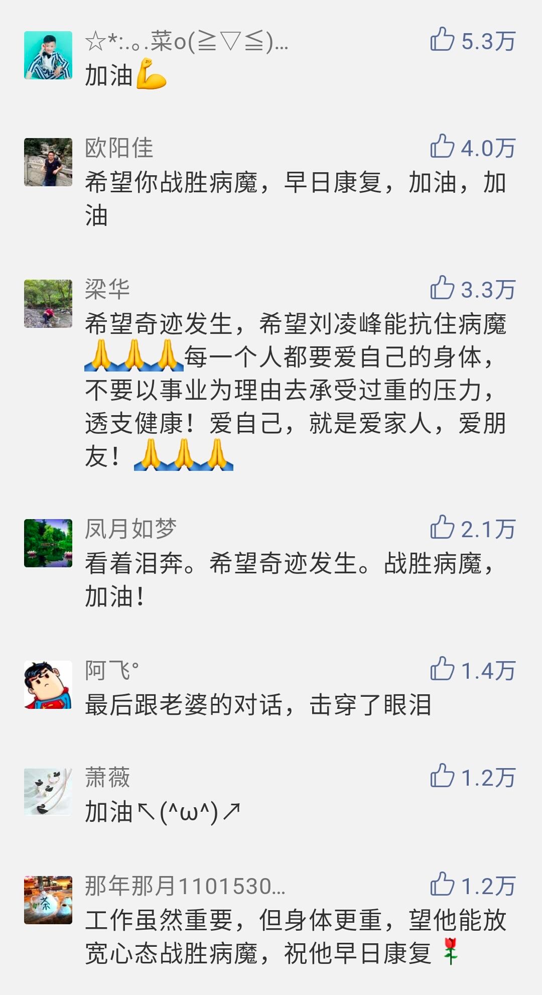 许多陌生网友为刘凌峰“加油”,“希望战胜病魔”!