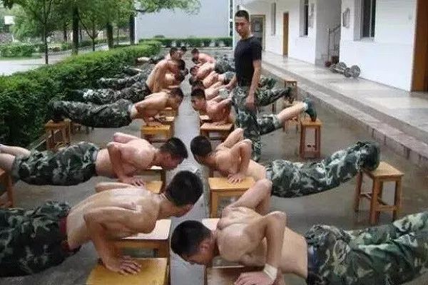 俯卧撑是部队最常见的体能训练课目,坚持做标准的俯卧撑可以有效锻炼肱三头肌和胸大肌,同时对腰腹核心的锻炼也有很好的效果。然而在部队,兵哥哥们却将俯卧撑玩出了新花样,让人又爱又恨。下面,一起去领略那些年我们做过的俯卧撑。