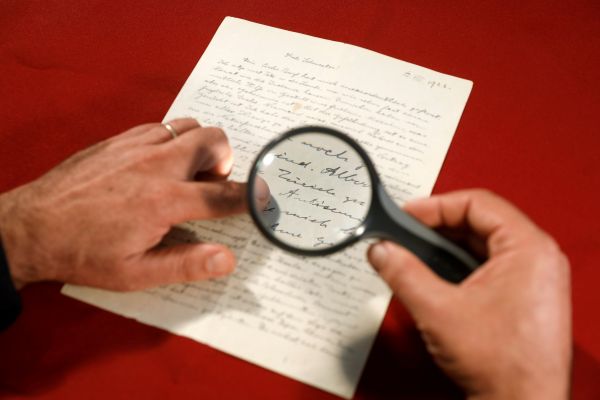 爱因斯坦提醒自己的妹妹提防未来严重危险的信件被拍卖。(路透社)