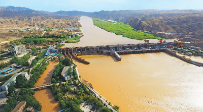 近日,我来到青铜峡,延绵千年的黄河水韵带给我深深的感动。青铜峡地处宁夏平原中部,经牛首山两峡相夹、湍流而下。峡谷山高水深,两岸悬崖峭壁。当我站在宏伟的青铜峡拦河大坝上举目眺望,一面是庄严肃穆的牛首山寺庙群,一面是开阔的“高峡平湖”库区水面。青铜峡大坝雄伟的气势,蔚为壮观,令人赞叹。
