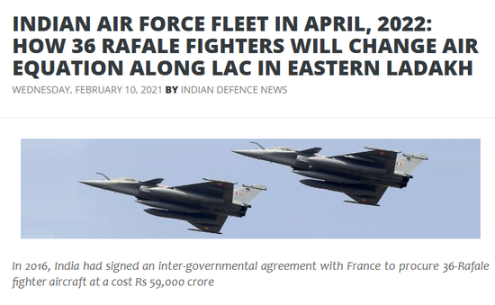 据《印度国防新闻》网站报道,2022年4月,印度空军将接收全部36架“阵风”战机,将改变中印边境的空中力量平衡。