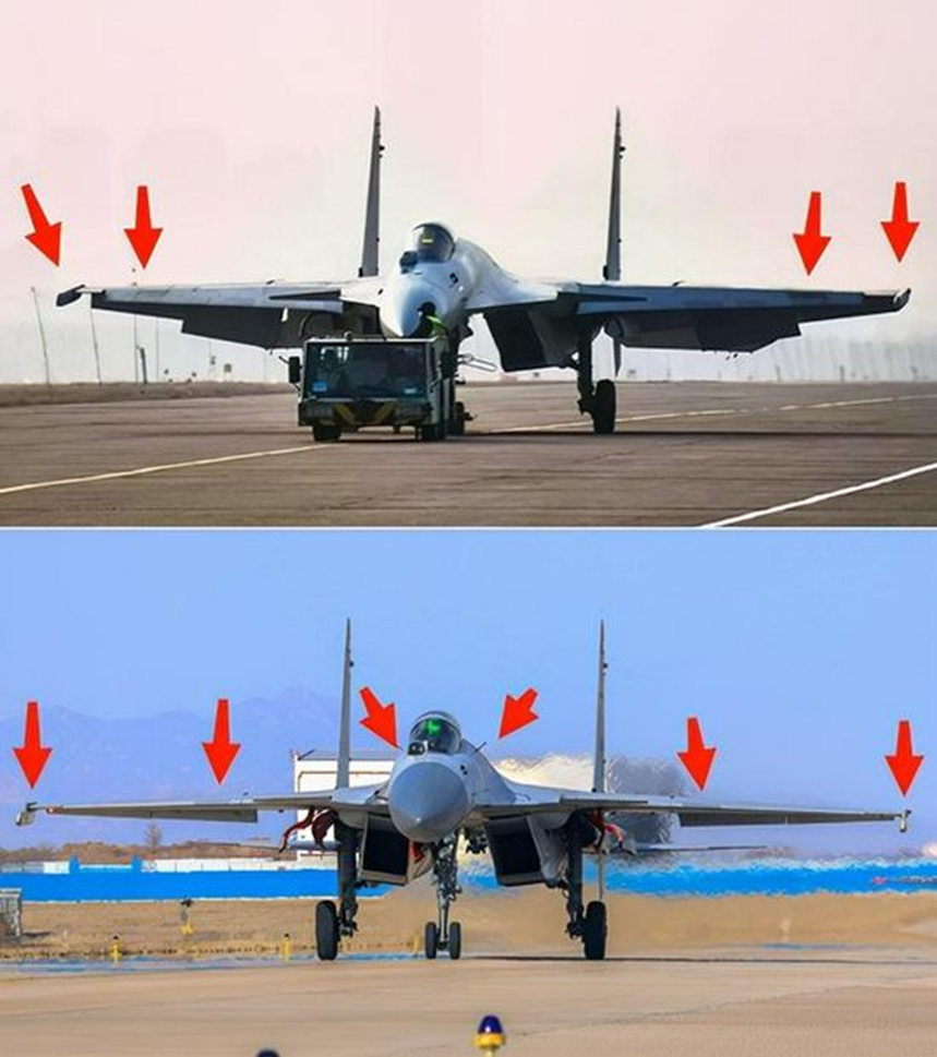 韩国媒体还“贴心”地标注出新(上)旧(下)歼-15战斗机的不同。