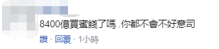 更有人表示,“8400亿新台币(指防疫及纾困振兴预算)买蜜饯了吗,你都不会不好意思。”
