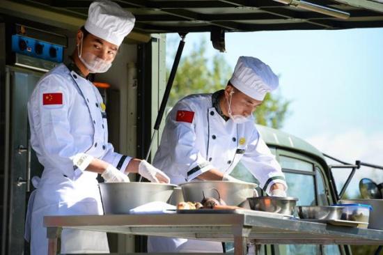 不过,兴许是觉得中国队用的炊具过于先进,对其他队伍不够公平,今年裁判组要求中国代表队在正式比赛中使用俄式的方舱挂车烹饪菜肴,而东风野战炊事车在给绍伊古烤完烤鸭之后,就只能给中国代表队自己做饭吃了。