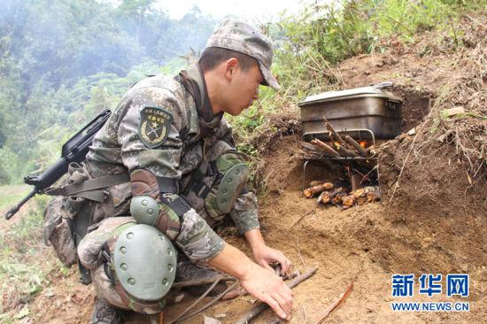 新华网此前报道:某部热带山岳丛林试训分队在野外做出了辣子鸡丁、竹笋炒肉片、排骨炖冬瓜、苦瓜炒蛋、素炒白菜5个菜,另外还有一桶小米绿豆汤。