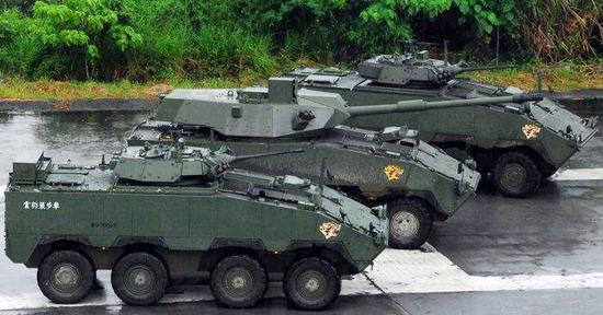 “云豹”在台军方代号为CM-32,是台湾地区军方2005年定型一款的8*8底盘的轮式装甲车。原计划采取车族的形式,在8*8地盘上安装25毫米机关炮和105毫米反坦克炮,不过最终由于技术不过关和价格等原因导致被放弃。目前台军方批量生产并装备部队的只有搭载7.62毫米机枪和40毫米榴弹发射器武器战的CM-32装甲指挥车和CM-33装甲输送车型号。此前台湾“中科院”研制的20毫米机关炮塔,除了证明台湾没有研制炮塔的技术实力外,主要是浪费了时间和经费。后来引进了美制30毫米机关炮生产技术才最终得以生产定型。
