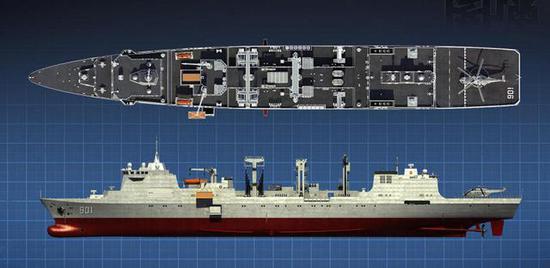 而随着辽宁号航母以及国产航母的临近下水,吨位更大、航速更高、补给能力更强大的远洋补给舰己成亟需。近日,英国简氏防务周刊报道了中国新型901型快速补给舰试航的新闻。901型补给舰从外形设计上看,舰体线条更加流畅,舰面设备更加集中,隐身性能更好。它补全了中国航母战斗群中最后一块短板。