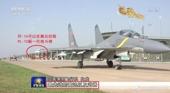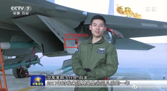 飞行员白龙背后的歼-16战机是第二批生产的第六架。感谢截图网友。