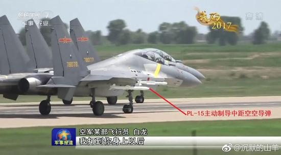 歼-16战机挂载空空导弹训练弹准备滑向起飞位置。感谢截图网友。