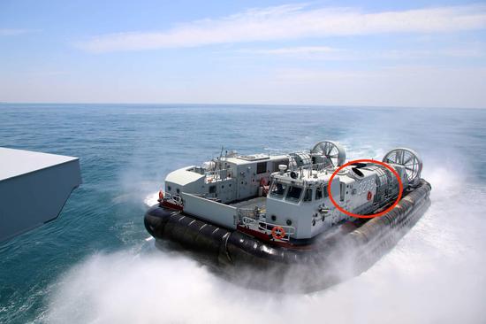 726A型气垫登陆艇一次可运送1辆05式两栖突击车、2辆05式两栖步兵战车、几十名陆战队员;也可换成运送4辆两栖步战车、40名陆战队员。相比较传统敞门式登陆舰艇只能在世界上15%的海岸进行登陆,726A艇可以在70%以上的滩头登陆。另外,传统登陆舰艇航速只有20节左右,而726A艇速度可能超过40节。倘若投送的距离较远,726A艇的优势就越发凸显。