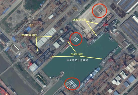 3个红圈中有7艘726A气垫艇。图片来自南海研究论坛,感谢制作者。