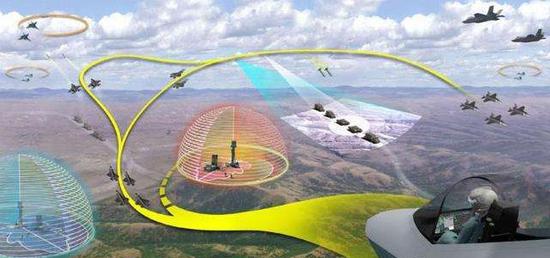 多架F35利用虚拟一体化感知系统实现对战场信息的有效掌控