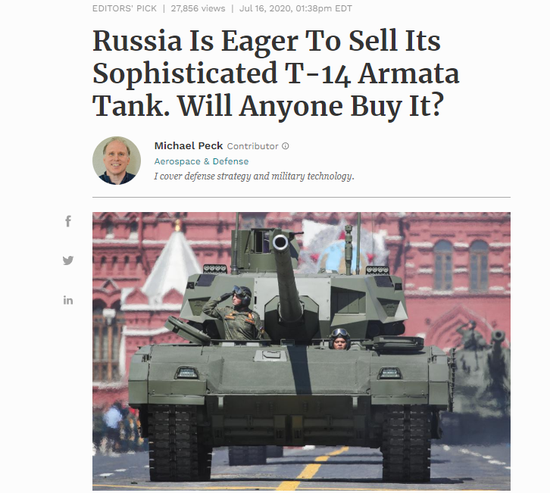据美国《福布斯》网站报道,俄罗斯正准备将最先进的T-14“阿玛塔”坦克出售给其他国家。但是有人会买吗?