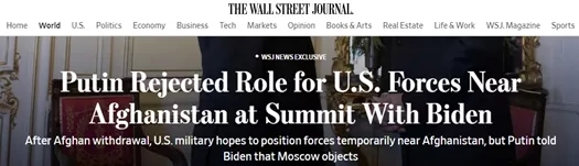 美国总统拜登今年6月在日内瓦同俄罗斯总统普京会面时曾提出,从阿富汗撤军后,美国有意在与阿富汗接壤的中亚国家部署情报收集装备。这一提议遭到普京直截了当的拒绝。俄方认为,美国在中亚的军事存在“不符合该地区的安全利益”。
