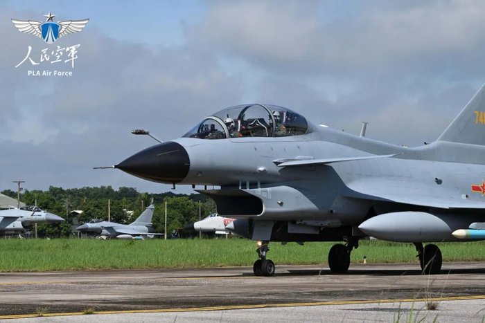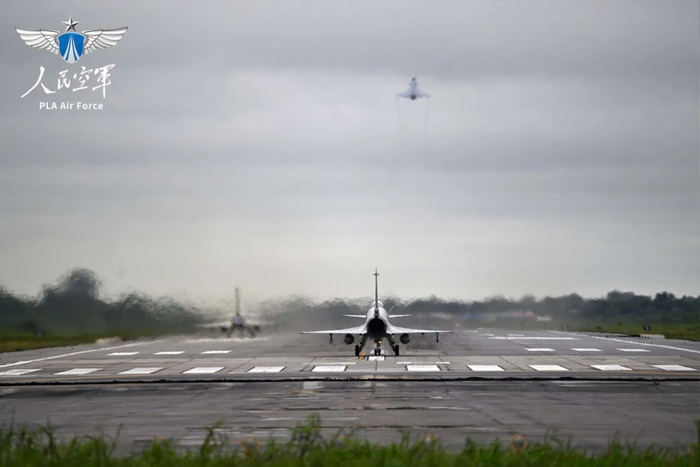 8月22日,在泰国空军乌隆基地,参加“鹰击-2024”中泰空军联合训练的中国空军歼-10S战斗机滑向起飞线。