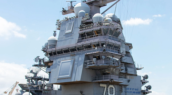 安装在“福特”号航母的DBR雷达和安装在“肯尼迪”号航母上的AN/SPY-6(V)2雷达社交媒体
